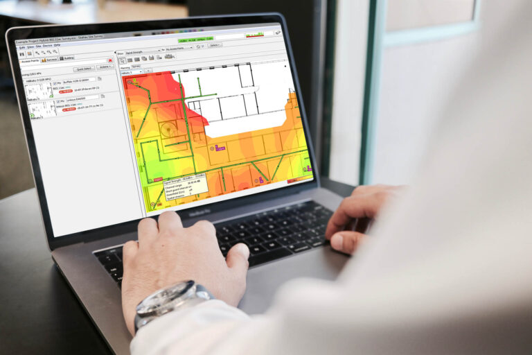 An TetracoreIT wireless expert will attend your premises with specialist equipment to ‘listen’ to your wireless. The data collected is then interpreted by our wireless experts and a strength/weakness heatmap is overlaid to the office floorplans, providing a graphical illustration of the current performance of the network.